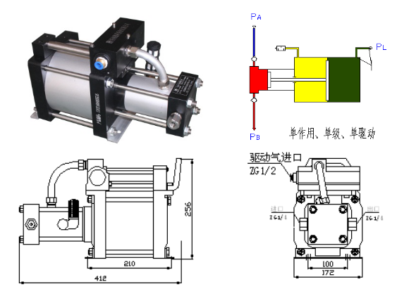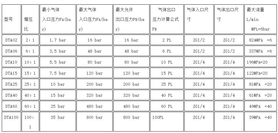 氣體增壓泵是標(biāo)準(zhǔn)單氣動頭單作用泵,可充氮?dú)?、空氣及大部份氣體介質(zhì),泵體采用優(yōu)質(zhì)鋁合金和不銹鋼缸體活塞,驅(qū)動缸徑分160mm、200mm、240mm三種規(guī)格,具有結(jié)構(gòu)緊湊、堅固耐用、大流量等特點(diǎn)。所有DTA系列泵根據(jù)使用加壓介質(zhì)的不同采用相應(yīng)材料密封件.